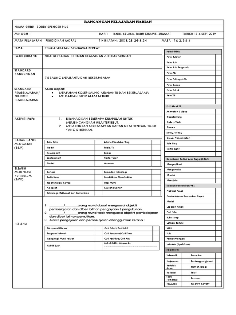 Download Rpt Pendidikan Moral Tingkatan 3 Terbaik Templat Rancangan Pengajaran Harian Rph Pembelajaran Abad Ke 21 Skoloh